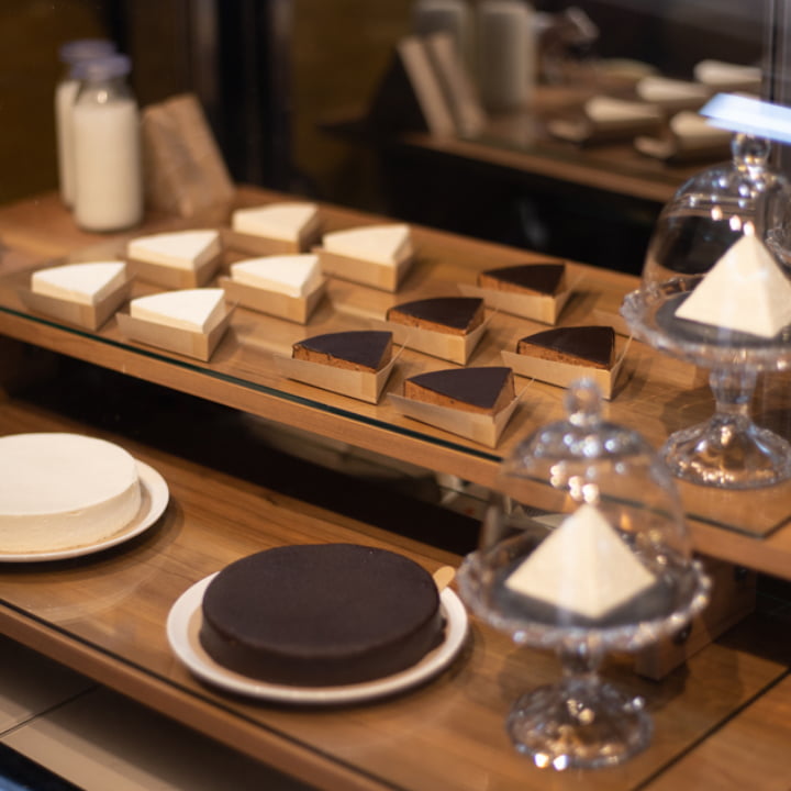店頭カフェスペース限定で、賞味期限10分の幻のアルペンチーズケーキを提供しています。口どけの食感を追求した結果、温度に非常に繊細なチーズケーキになったため、店頭でも10分以内に召し上がって頂くことをおすすめしています。また、製造数に限りがあるため、お早めのご来店をオススメ致します。